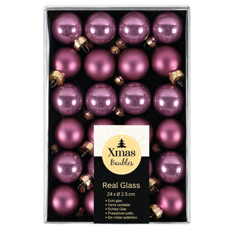 B2B Weihnachtskugel mini glas 2,5 cm 24 Stück in Lila POS000062